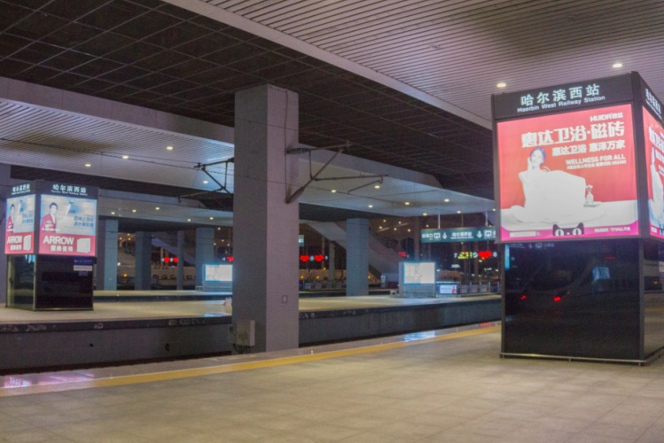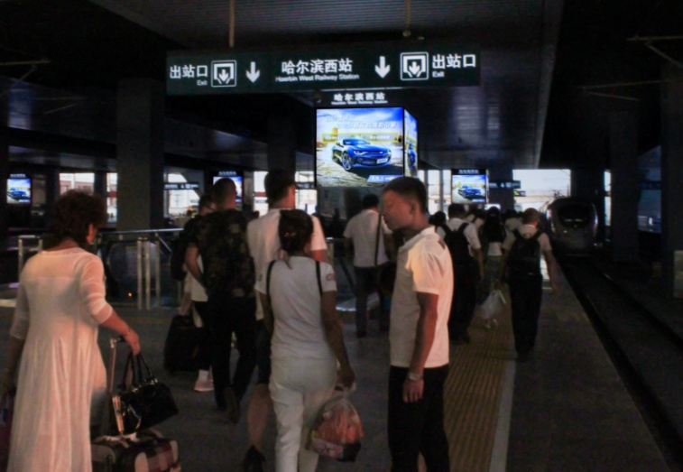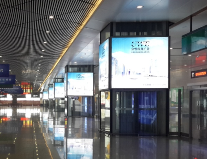 哈尔滨西站出站通道立柱电梯灯箱【图片待完善】